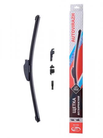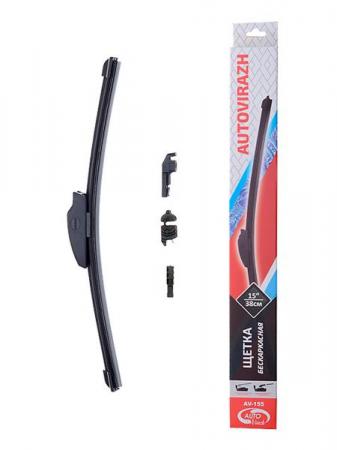 AUTOVIRAZH Щетка с/о 38см/15" бескаркасная подходит для всех сезонов, плотное прилегание к стеклу, качественная морозоустойчивая резина, графитовое напыление. Благодаря своей гибкости обеспечивает равномерное очищение всей поверхности стекла